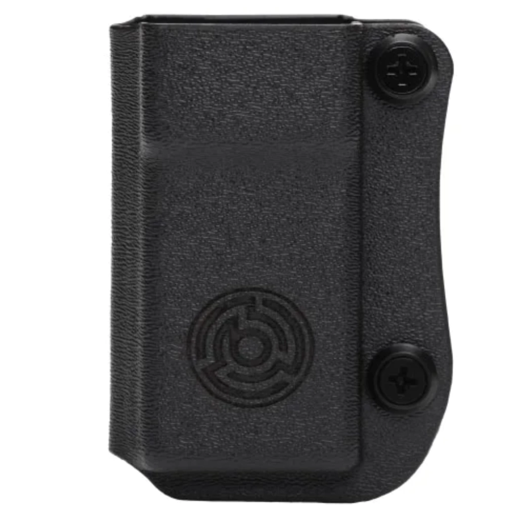 El porta cargador Byrna es totalmente ajustable y sujetará con seguridad su cargador Byrna de repuesto en la cintura o en el bolsillo.