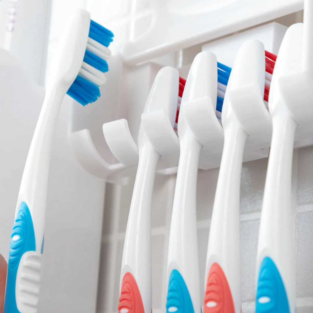 El porta cepillos con tapa protege los cepillos del polvo y la humedad, manteniéndolos siempre limpios y listos para usar. Tiene capacidad para hasta 5 cepillos.