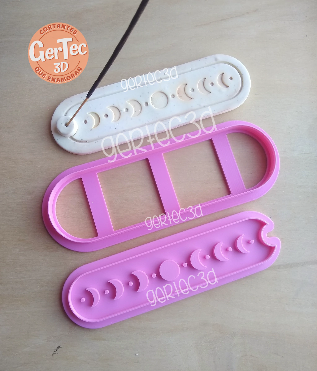 - [SKU 2815D6] -* PORTA SAHUMERIOS (D6) LUNAS / CORTANTE + SELLO *- Cortantes para galletitas, fondant, pasta de azúcar, cualquier tipo de masas comestibles, porcelana fría, arcilla, plastilina, etc.- MEDIDAS: 21 x 6,2 cm. Apróx.- INCLUYE: Cortante Contorno + Sello Lunas- Podés combinarlo con nuestros rodillos y lograr texturas maravillosas!- Encontrá nuestro catálogo de rodillos👉https://www.gertec3d.com.ar/texturadores-para-masa/texturadores-rodillos/- Material: Plástico PLA, NO TOXICO!- Color sujeto a disponibilidad actual de materia prima.ATENCIÓN:Se deben lavar a mano utilizando agua fría. No aptos para lavavajillas. No exponer a altas temperaturas. Secar bien antes de guardar.