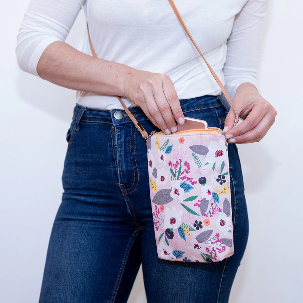 Mini cartera porta celular con correa de cuero para cruzar o colgar del hombro. Material impermeable, lavable y con capacidad para celulares grandes y documentos. Producto nuevo!