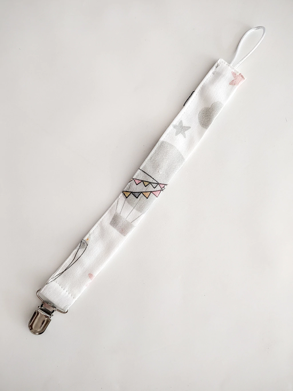 El unico que puede evitar que no se pierdan los chupetes! ;)Confeccionados en gabardina 100% algodon, con una cinta para enganchar el chupete.El broche metalico tiene plastico del lado de adentro para que no marque la ropa del bebe.