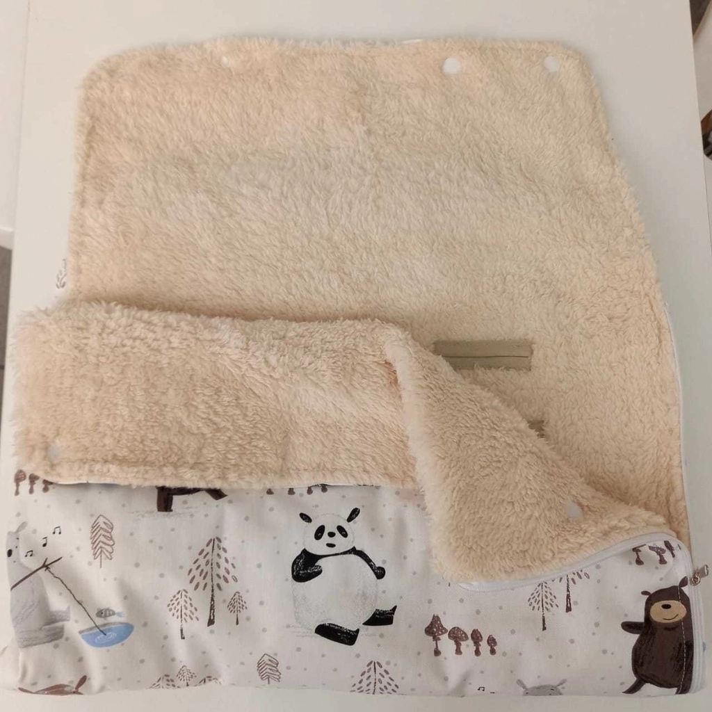 Portaenfant super abrigado con corderitoPosee 7 ojales para adaptar a huevito o silla de autoBroches a presion en la capucha y solapaMedidas: 80cm de largo - 43 cm de ancho