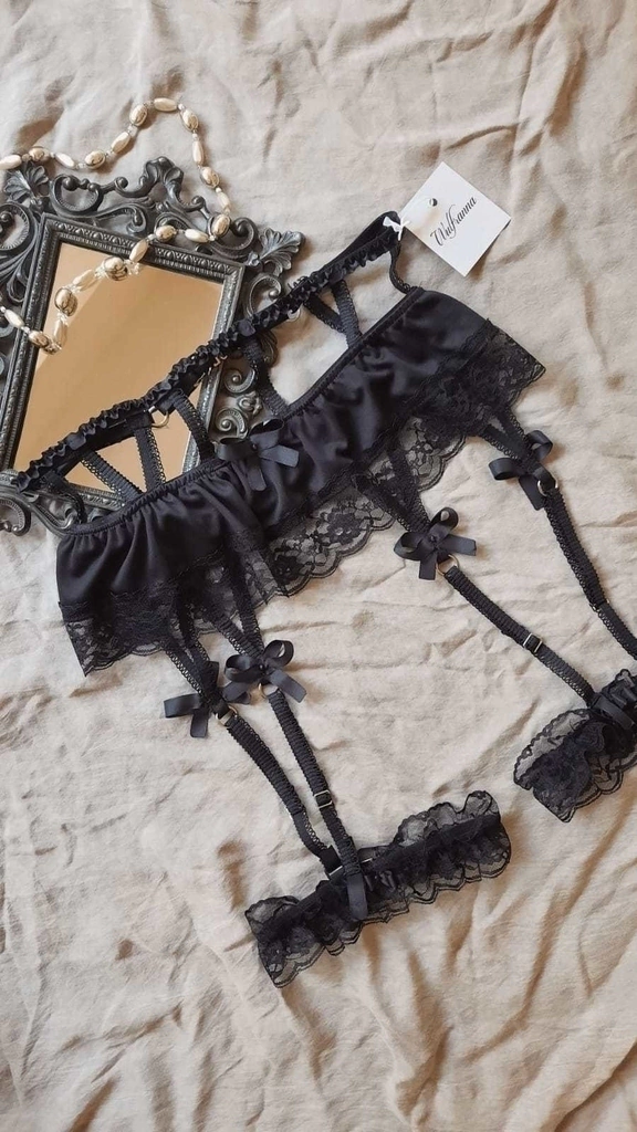 • Portaligas con ligas desmontables de puntilla y elásticos regulables.