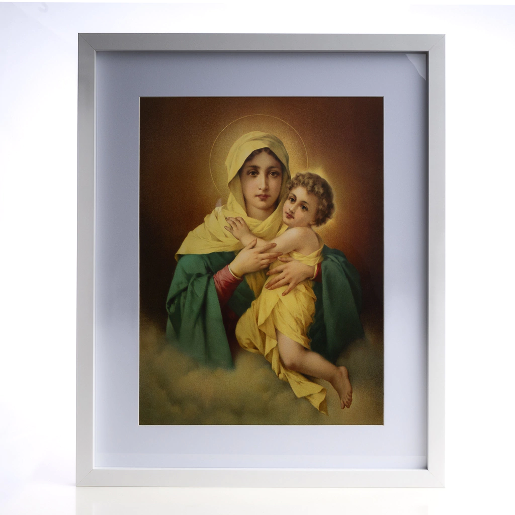 Portaretrato en madera con imagen de la Virgen de Schoenstatt. También se puede colgar. Ideal para el Santuario hogar .color: marron claro .Dimensiones: 60 cm de alto x 40 cm de ancho
