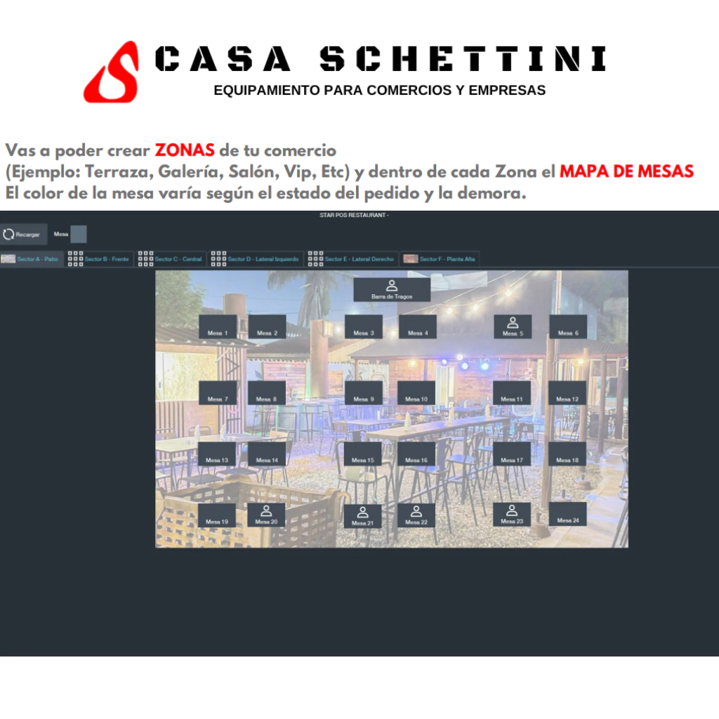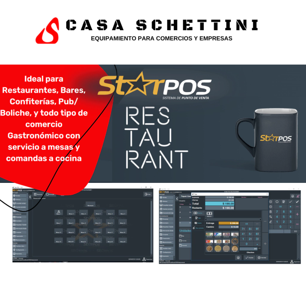SOFTWARE STARPOS RESTAURANTE: Sistema de gestión y de punto de ventas orientado comercios gastronómicos con control de mesas y mapas según zona del comercio, notas en comanda, control de tiempos, stock y recetas. Delivery y muchas funciones más.