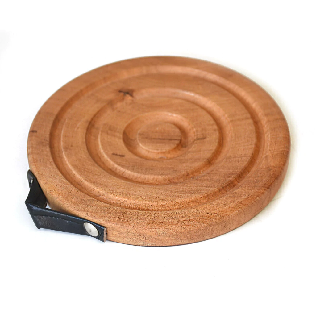 Posa pava, fuentes, jarros, redondo de madera acanalada. De excelente calidad, con manija para colgar. Ideal para tener en todo momento en la cocina, y poder apoyar pavas, jarros, o fuentes calientes.Super resistente.Material: Algarrobo.Mantenimiento con aceite de cocina común cuando pierde brillo. Le da vida y la mantiene nutrida. Solo cuando se vuelva muy áspera, lavar con agua y detergente y en forma inmediata dejar secar al sol. Una vez seca guardar o colgar.Las medidas no son exactas, pueden tener mínimas variaciones de milímetros entre una y otra en la altura, borde o diámetro y lo mismo con el color ya que el producto es artesanal.Medidas del Posa Pavas: 15 cm (diámetro) x 1,5 cm (espesor)