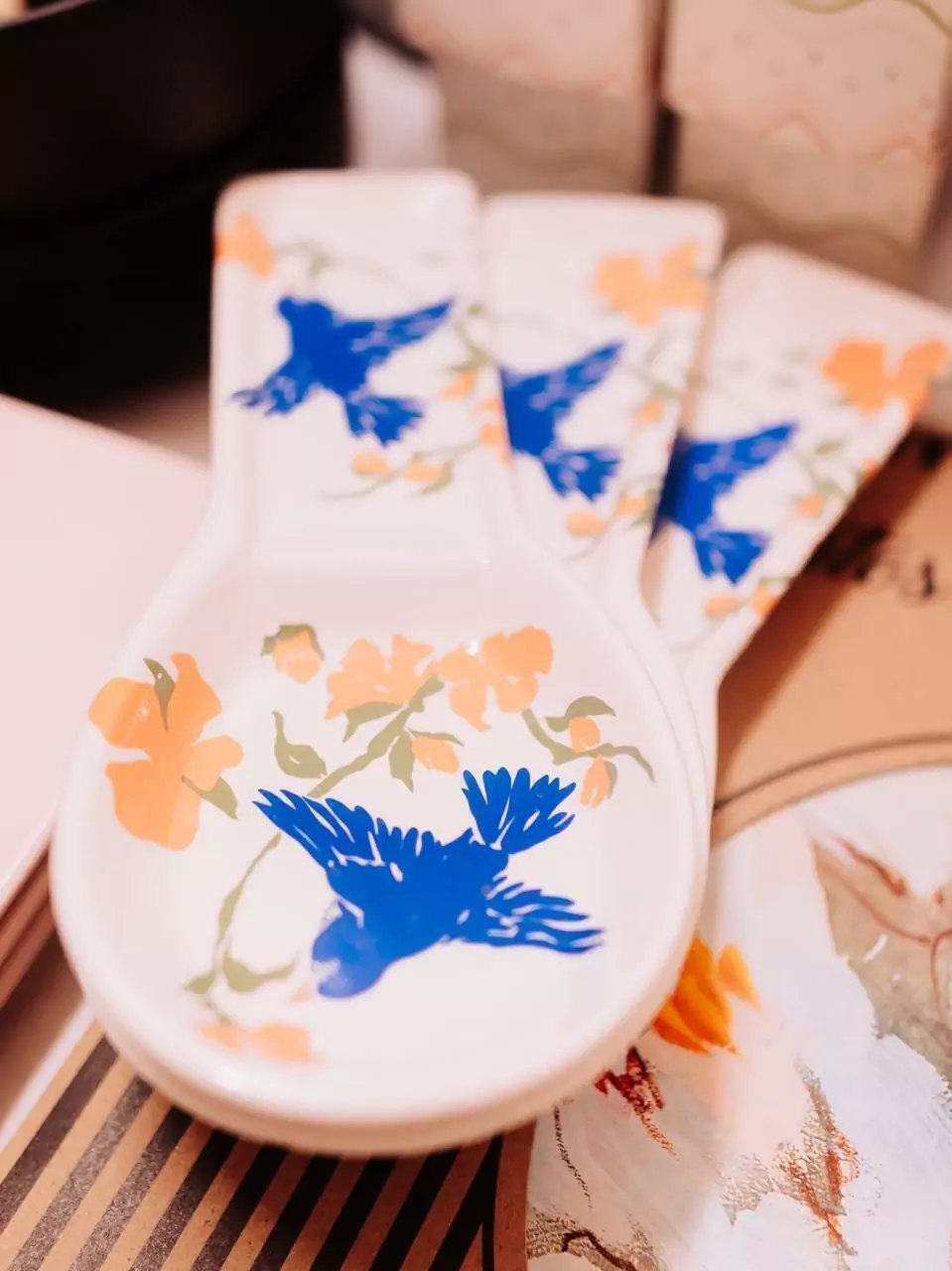 Posacuchara de cerámica. Para apoyar la cuchara mientras estamos cocinando y no está en uso, sin ensuciar la mesada