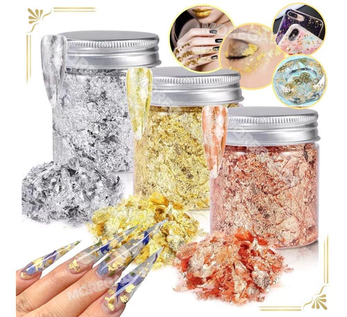 ideal para hacer joyas de resinaCOLORES VIBRANTESVienen con colores dorado, plateado y dorado rose , los copos de lámina dorada no son fáciles de desvanecer y oxidar, pueden crear un impresionante efecto de textura brillante para hacer que sus manualidades se vean especialesUSOS AMPLIOS Los copos de oro son perfectos para joyería de resina, pintura acrílica, arte de uñas, fabricación de limo, marco de fotos y otras manualidades.MEDIDAS: 5,5CMX6,5CMX17CM D