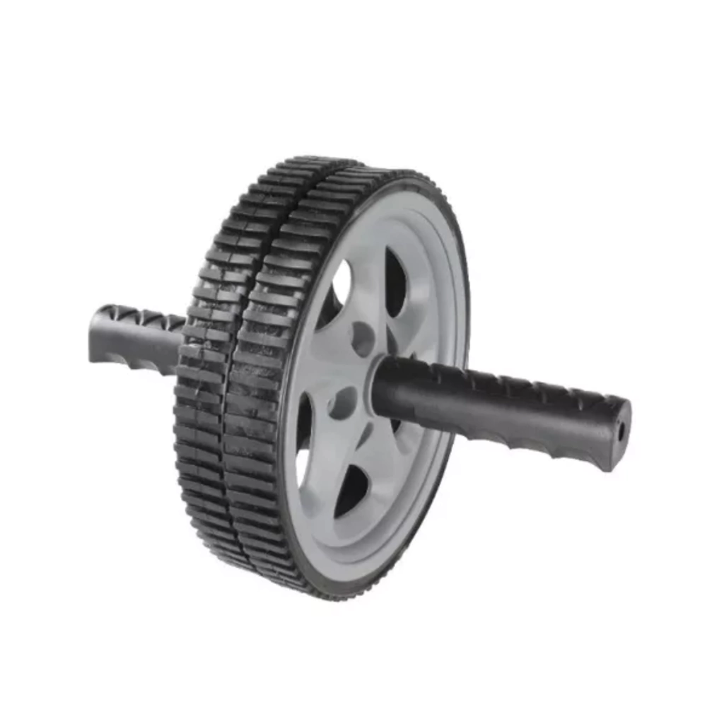*RUEDA DOBLE PARA ABDOMINALES*CARACTERÍSTICAS:• Dimensiones: Ancho entre las 2 ruedas 5 cm. .• Color: Negro con gris.• Material: Mangos plásticos de polipropileno. Eje metálico.• Cubierta de las ruedas: Banda elástica antideslizante de PVC.• Ultra – Resistente.• Diseño de dos ruedas, brinda gran estabilidad.• Fortalece hombros, brazos, muslos, zona lumbar y abdominales.