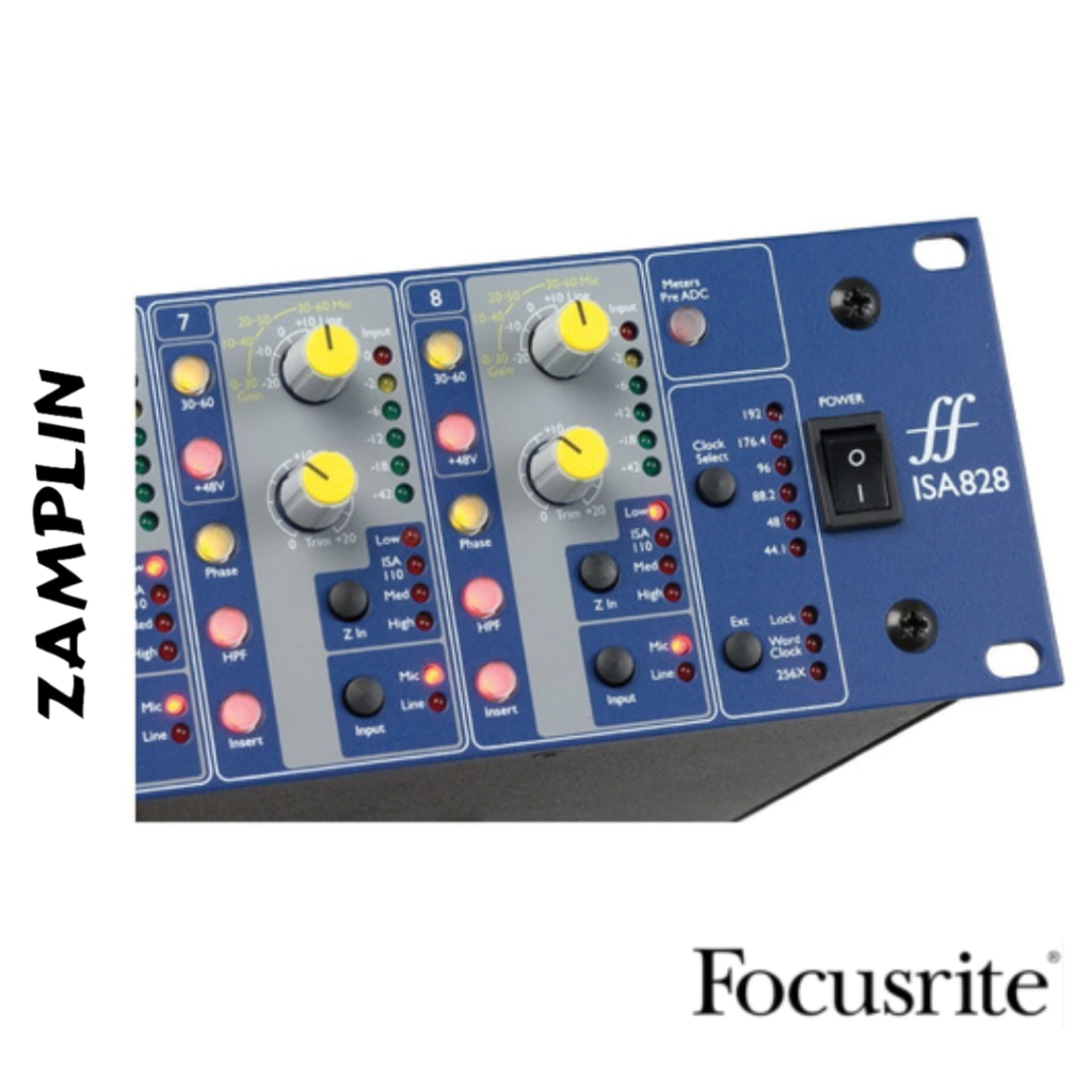 El ISA - 828 de Focusrite es un pre amplificador de microfono de ocho canales, que presenta pre amplificadores originales basados en transformadores ISA con el sonido exclusivo Focusrite de alta gama.