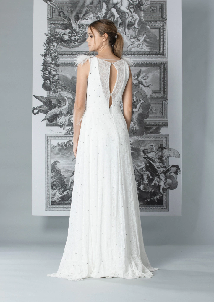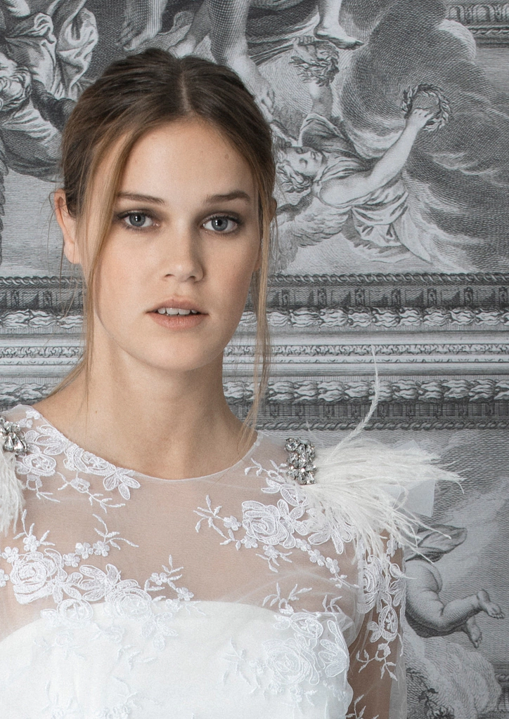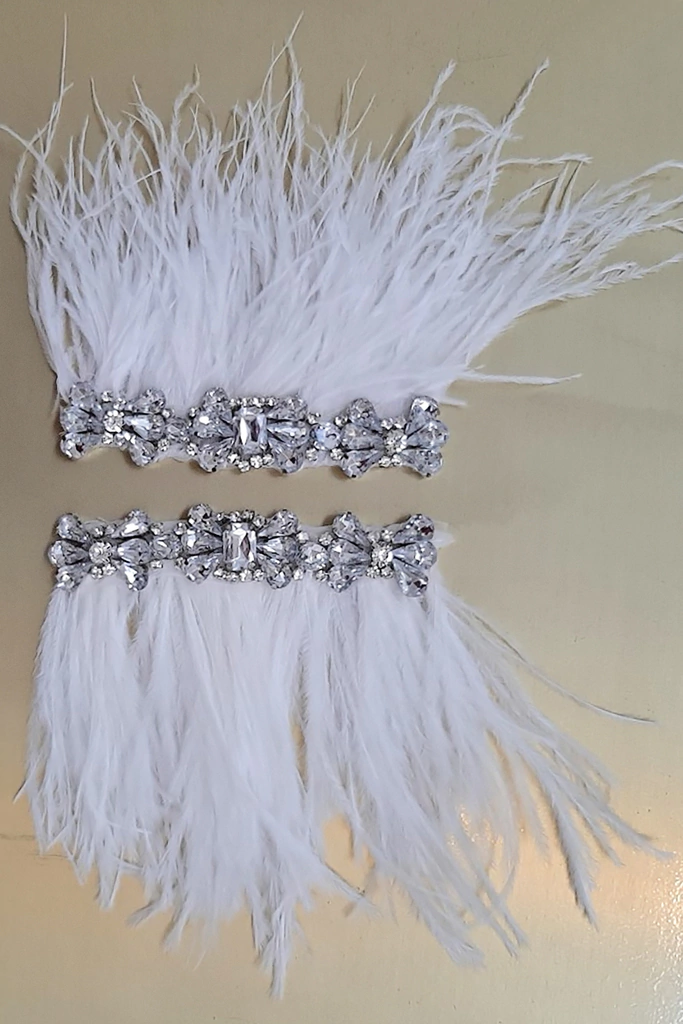 Charretera con aplique de strass y piedras cristal con plumas marabú.