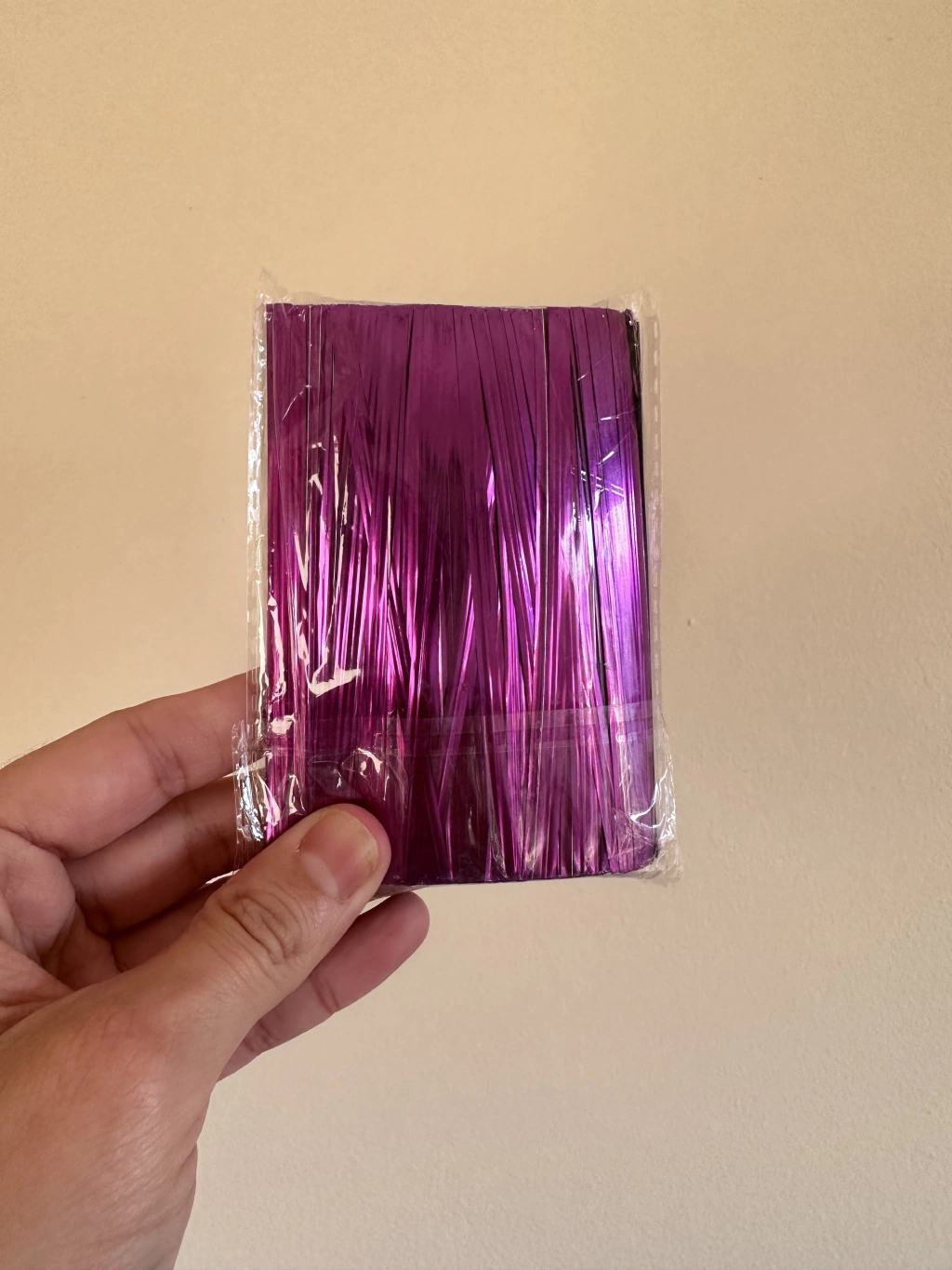 Precinto cierra bolsas. Interior de alambre. 6 cms de largo.Colores disponibles: Dorado, plateado, azul, rojo y fucsia.Precio por 50 unidades.La foto es sólo para ver el color, no hace referencia a la cantidad.Abonando por deposito o transferencia bancaria 15% de descuento.