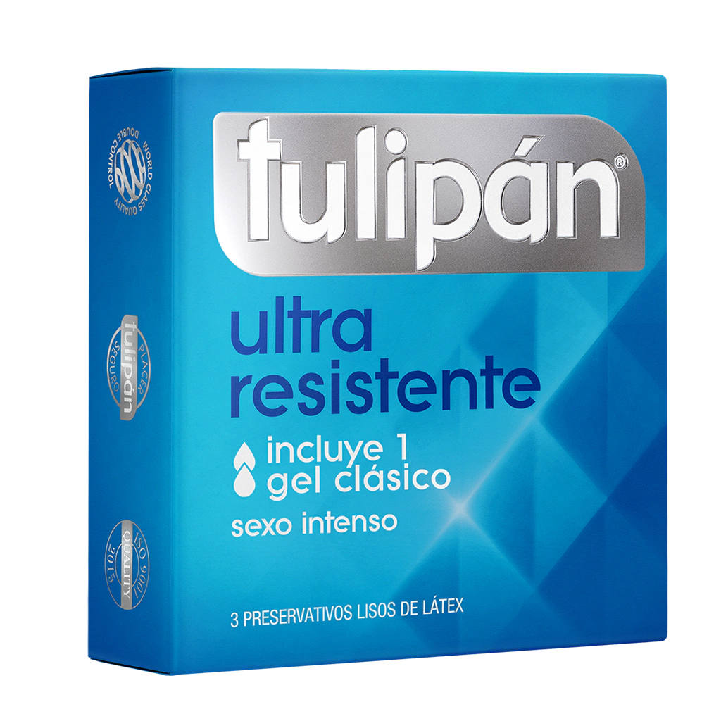 Tulipán Ultra Resistentemás espesor, más resistencia y mayor tranquilidad para situaciones de máximo cuidado.Incluye 1 Gel íntimo ClásicoPreservativo liso de látex