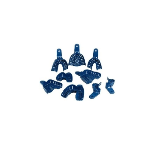 Cubetas Autoclavables. Cubetas plásticas de poliestireno para tomar impresiones que permiten una mejor visibilidad y una colocación precisa. Altamente rígidas. No se deforman bajo presión. Diseño perforado para permitir una mayor retención y evitar asi deformaciones. Con mango retentivo y antideslizante, lo que asegura un mejor control. Superficie suave y redondeada. Compatibles con todos los materiales de impresión.
