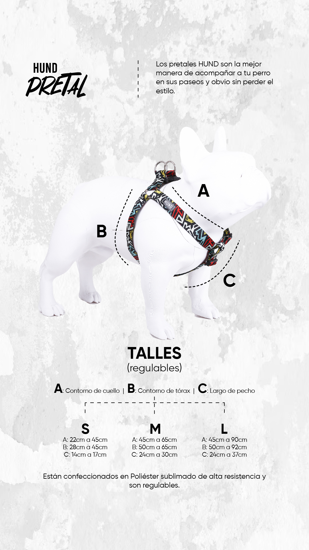 Los pretales HUND son la mejor manera de acompañar a tu perro en sus paseos y obvio sin perder el estilo único de cada uno ya que tenes varios diseños para combinar con toda nuestra gama de accesorios. Están confeccionados en Poliéster sublimado de alta resistencia y son regulables.