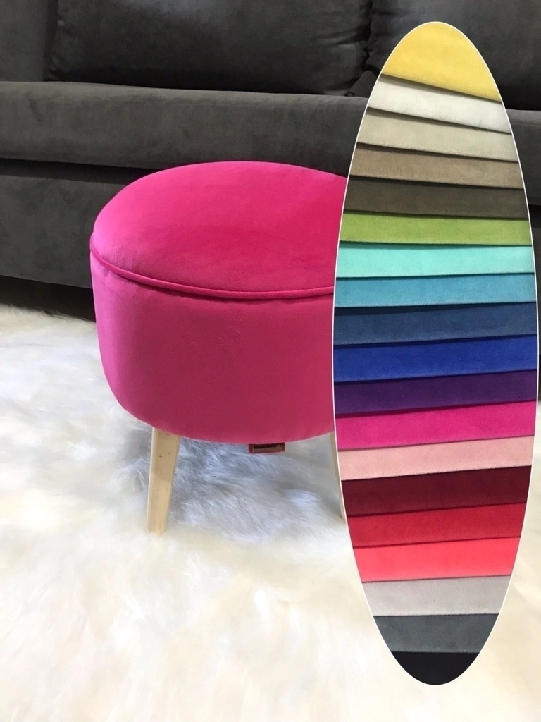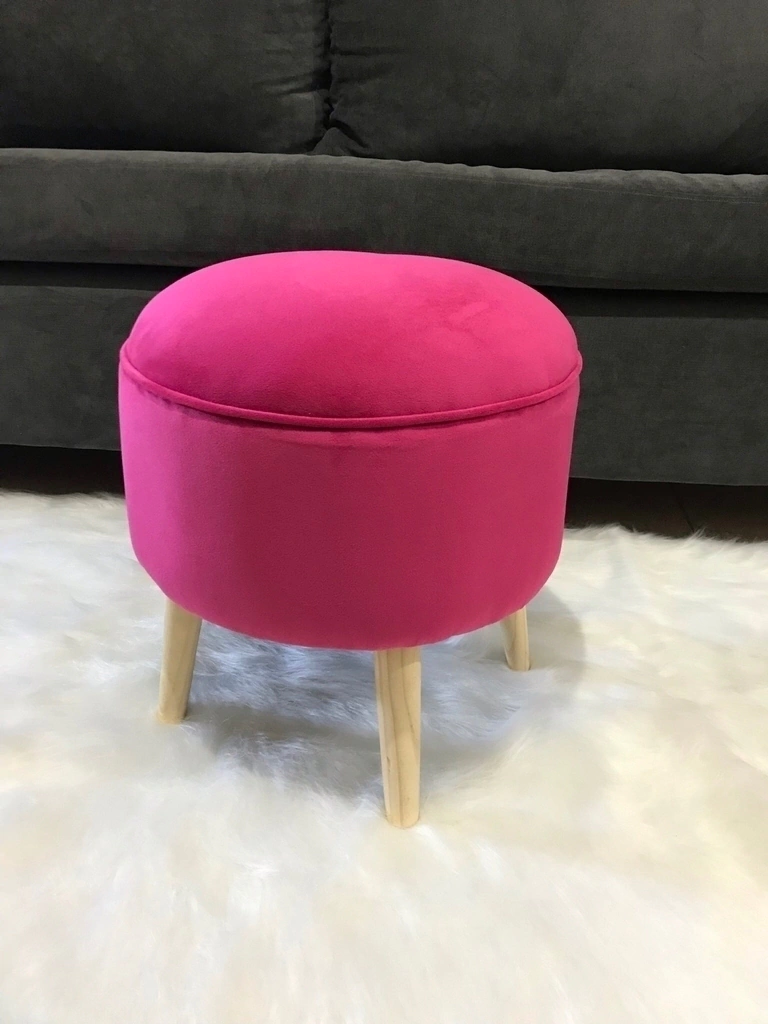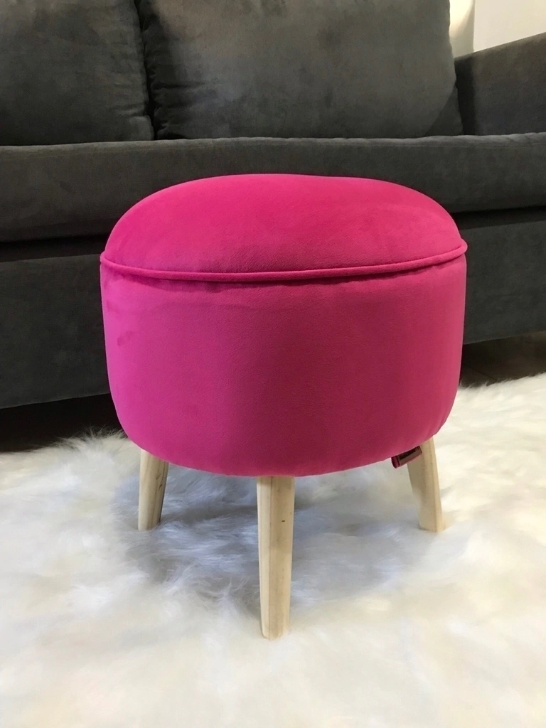 Puff realizado en madera maciza, reforzado, tapizado en pana vivo.