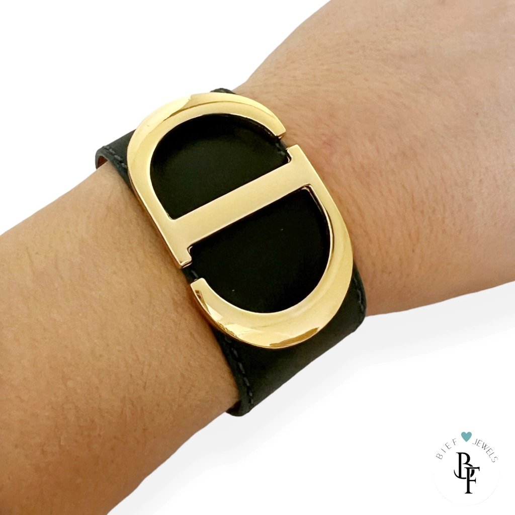 Pulsera de cuero ecológico con aplique enchapado en oro.