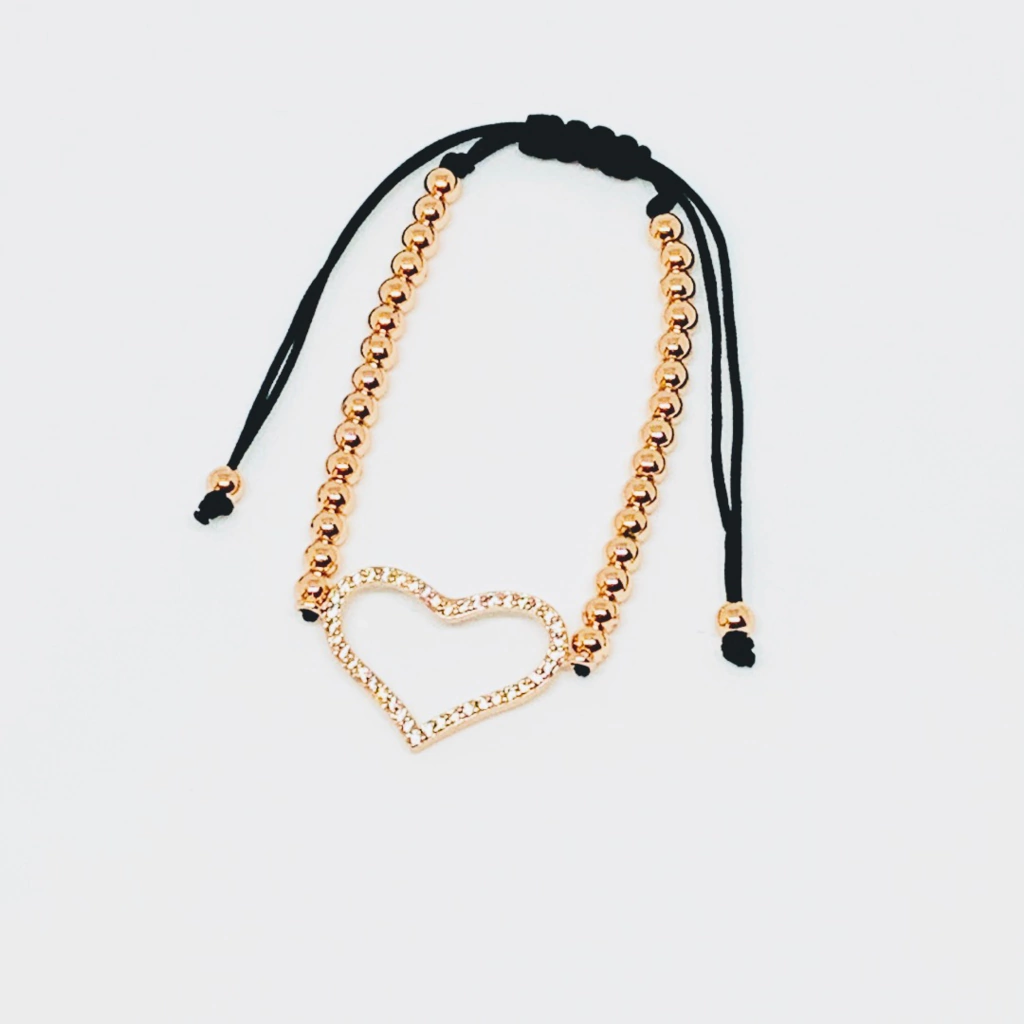 Material aleación con baño de oro rosado y corazón piedras cubic zirconia