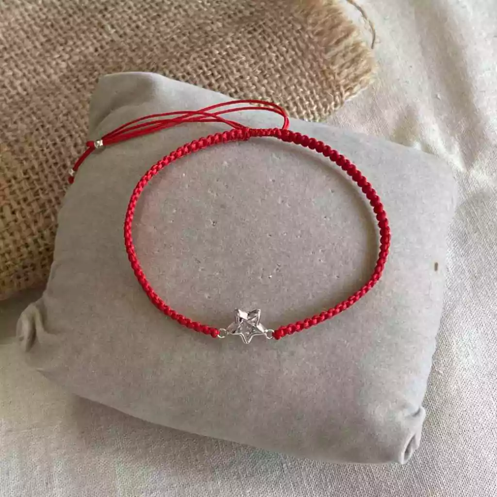 PULSERA HILO DE CEDA ROJO CON DIJES EN PLATA