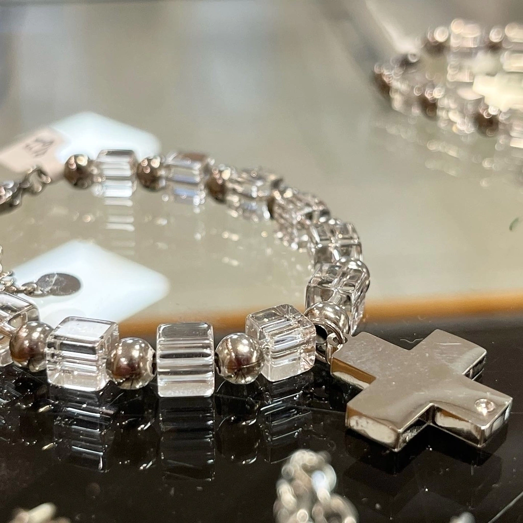 PULSERA CRISTAL DE ROCA CUBO Y ACERO FOREVER ITALIA CON CRUZ K2329