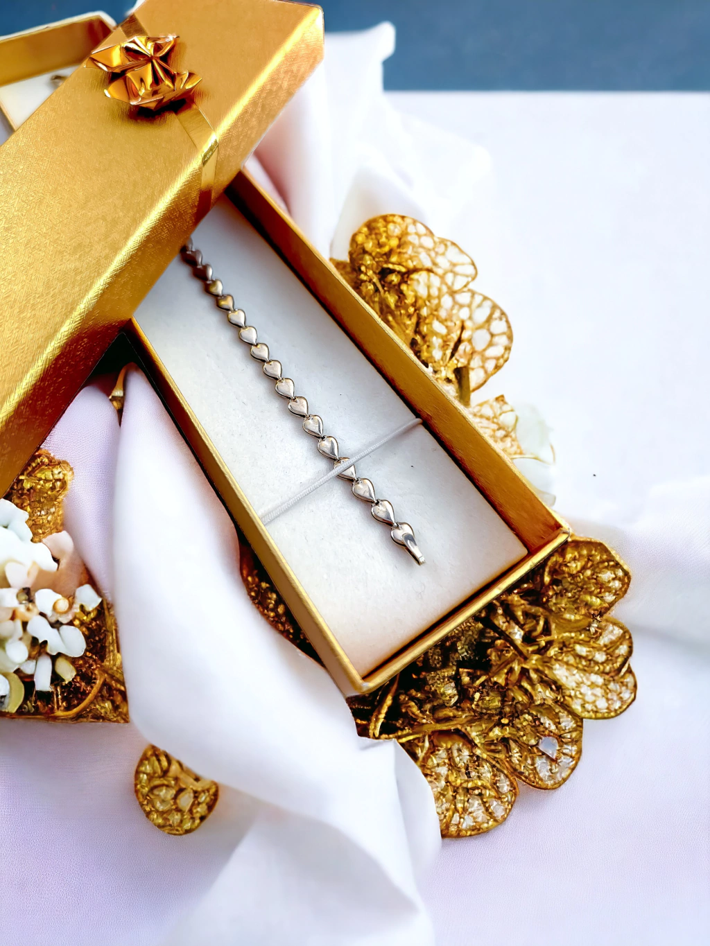 ¿Quieres lucir elegante y moderna? Con nuestra pulsera de eslabones tipo corazones en oro 18k blanco, tendrás una joya delicada y con brillo característico que complementará cualquier outfit. Además, su diseño adaptable se ajustará perfectamente a tu muñeca y su peso ligero te permitirá usarla cómodamente todo el día. ¡Hazte con la tuya ahora en Fasano Joyeros!