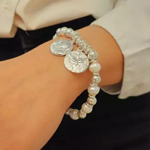 Pulsera de perlas de rio y bolitas con medallas san benito y espiritu santo