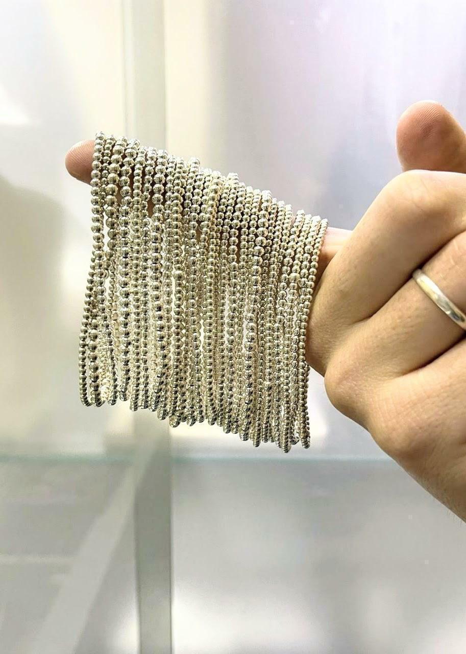 PRECIO POR UNIDADPulseras elastizadas con bolitas de plataMedida bolitas 2,5 mm.Medida total 16 cm aprox.Joyería en PLATA 925.