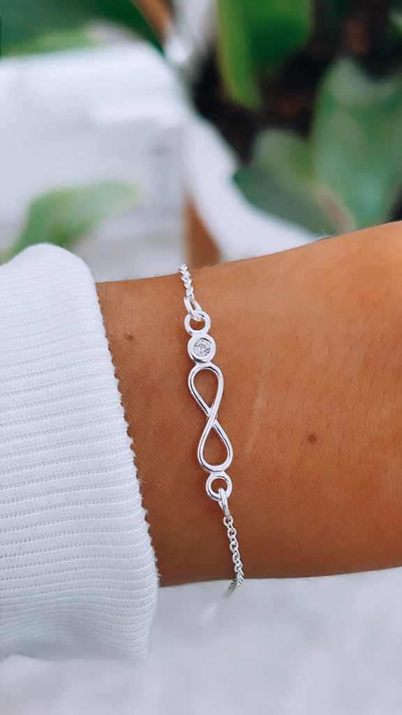 PLATA 925. Pulsera con dije infinito y punto de luz.