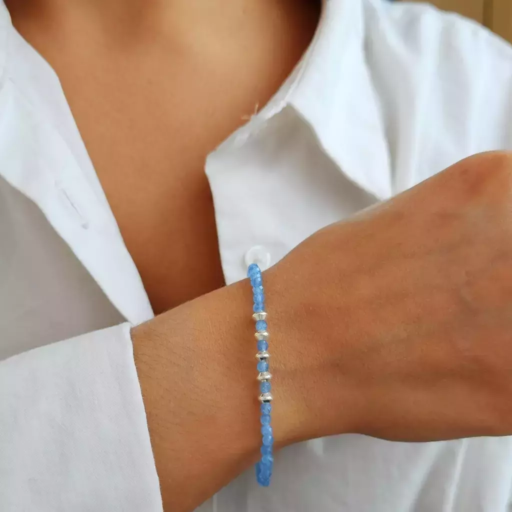 Pulsera de piedras naturales de 3 mm y rombos de plata lisa de 5 mm