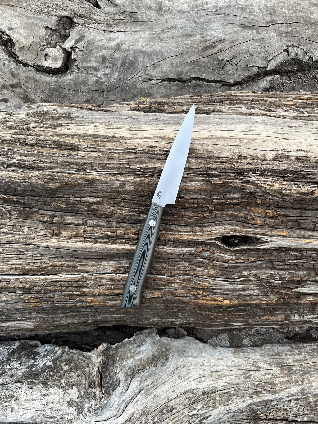 - Acero: inoxidable 420 Mov/ACX 380 (España) de 2 mm de espesor máximo.- Largo de hoja: 10,5 cm- Ancho máximo en la panza: 2,2 cm- Largo total: 21,1 cm- Peso del cuchillo: 74 gr- Tornillos loveless inox-La terminación de la hoja es satinado, el cabo es de micarta.-Afilado a mano con piedras japonesas, listo para usar.Hecho a mano. Garantía limitada de por vida.
