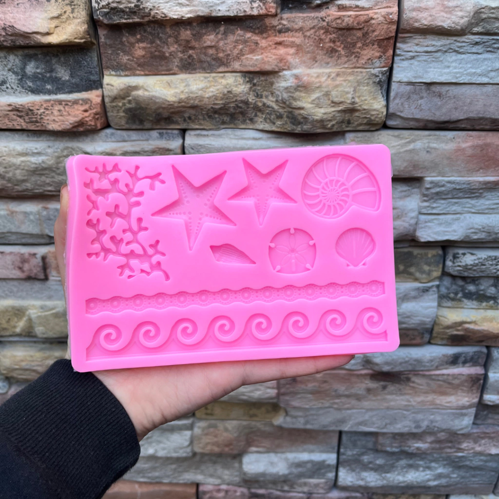 Contiene varios motivos mar. Estrella, caracoles, algas, olas.Molde de 18x 11,5cm.