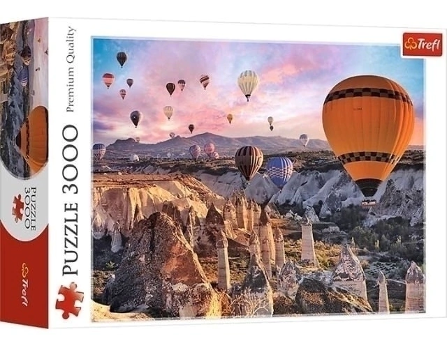 PUZZLE TREFL 3000 PZS GLOBOS EN CAPADOCIAExcelente rompecabezas de 3000 piezas que representa “Globos en Capadocia”, de origen polaco.Calidad Premium. Ideal para armarlo en familia o con amigos. Perfecta herramienta para mejorar la memoria visual y la concentración!La calidad superior se logra mediante el uso de cartón grueso apropiado, una capa especial no reflectante y el ajuste perfecto de las piezas del rompecabezas.Las medidas son de 116 x 85 cm.Orientación: Horizontal.Material: Cartón.