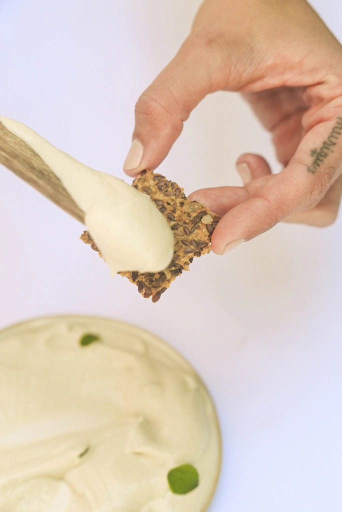 Queso vegetal untable a base de castañas de cajú clásico. Fuente de proteína vegetal. Excelente acompañante de nuestras crackers raw de girasol y lino.Ingredientes: Castañas de cajú fermentadas, cultivos activos: Lactobasillus acidophilus, sal rosada de la patagonia, agua filtrada.Mantener refrigerados. Una vez abiertos consumir dentro de los 15 dias.#crudo #vivo #artesanal
