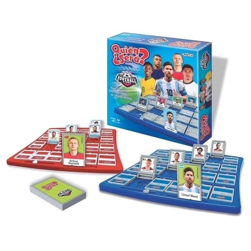 Juego de Mesa, ¿Quién Será? edicion Estrellas de Futbol.Poné a prueba tus habilidades de reconocimiento!¿Quién Será? Estrellas mundiales de fútbol, es un juego en el que cada jugador elige un futbolista misterioso y a través de preguntas cuyas respuestas sean sí o no, tratará de adivinar el futbolista misterioso del oponente. Cuando creas saber quién es el futbolista misterioso de tu rival, puedes adivinar. Si te equivocas, ¡pierdes la partida! También puedes desafiar a tu oponente a una serie de partidas con la Serie Campeonato.El primer jugador en ganar 5 partidas será el campeón!!Contiene:- 2 Tableros,- 24 Cartas de futbolistas misteriosos,- 24 Cartas de futbolistas de dorso rojo,- 24 Cartas de futbolistas de dorso azul,- Instrucciones.Edad recomendada: +5 años.Medidas: 26 cm alto, 31 de largo y 4,5 de ancho