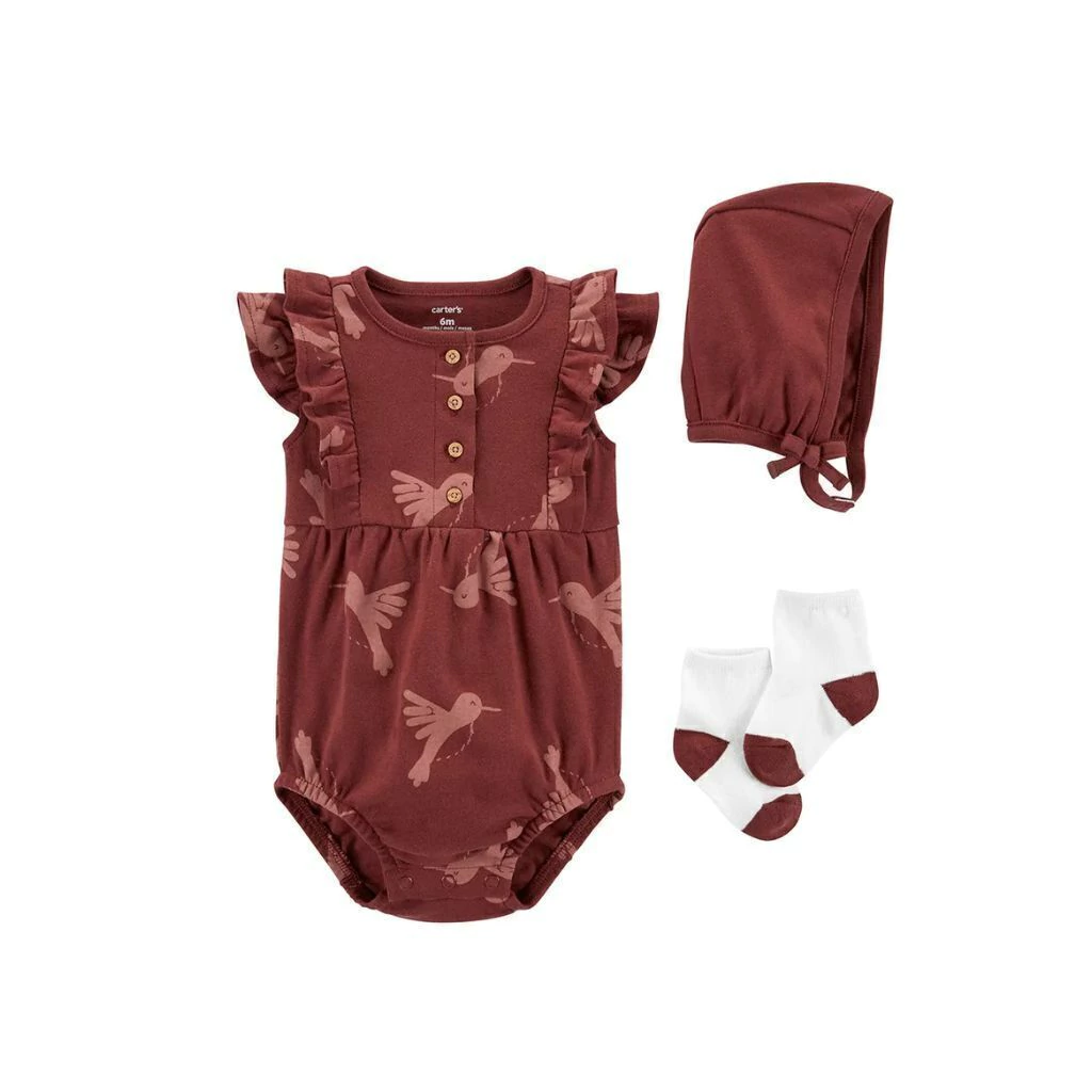 Carter´s Set 3 Piezas Body mangas cortas, Gorro y Medias Colibrí (1N678410)