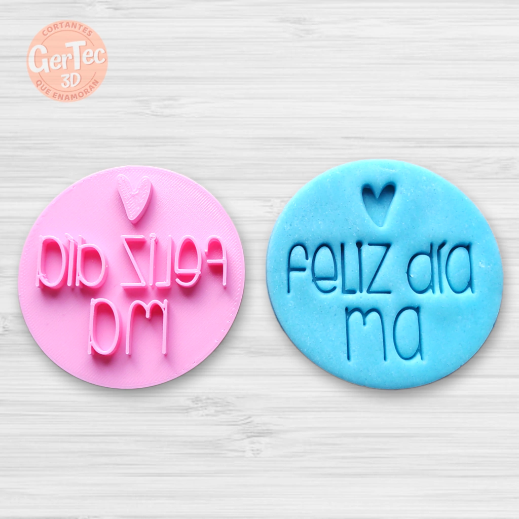 - [SKU 2238C] -* " FELIZ DIA MA " / SELLO CON CORTANTE OPCIONAL *- Cortantes para galletitas, fondant, pasta de azúcar, cualquier tipo de masas comestibles, porcelana fría o plastilina.- Podés agregar el cortante contorno en las variantes del producto, al carrito de compras.- Medidas disponibles: 6,5 cm. y 5,5 cm. (elegir la medida en las variantes del producto)- Material: Plástico PLA, NO TOXICO!- Color sujeto a disponibilidad actual de materia prima.ATENCIÓN:Se deben lavar a mano utilizando agua fría o tibia. No aptos para lavavajillas. No exponer a altas temperaturas. Secar bien antes de guardar.