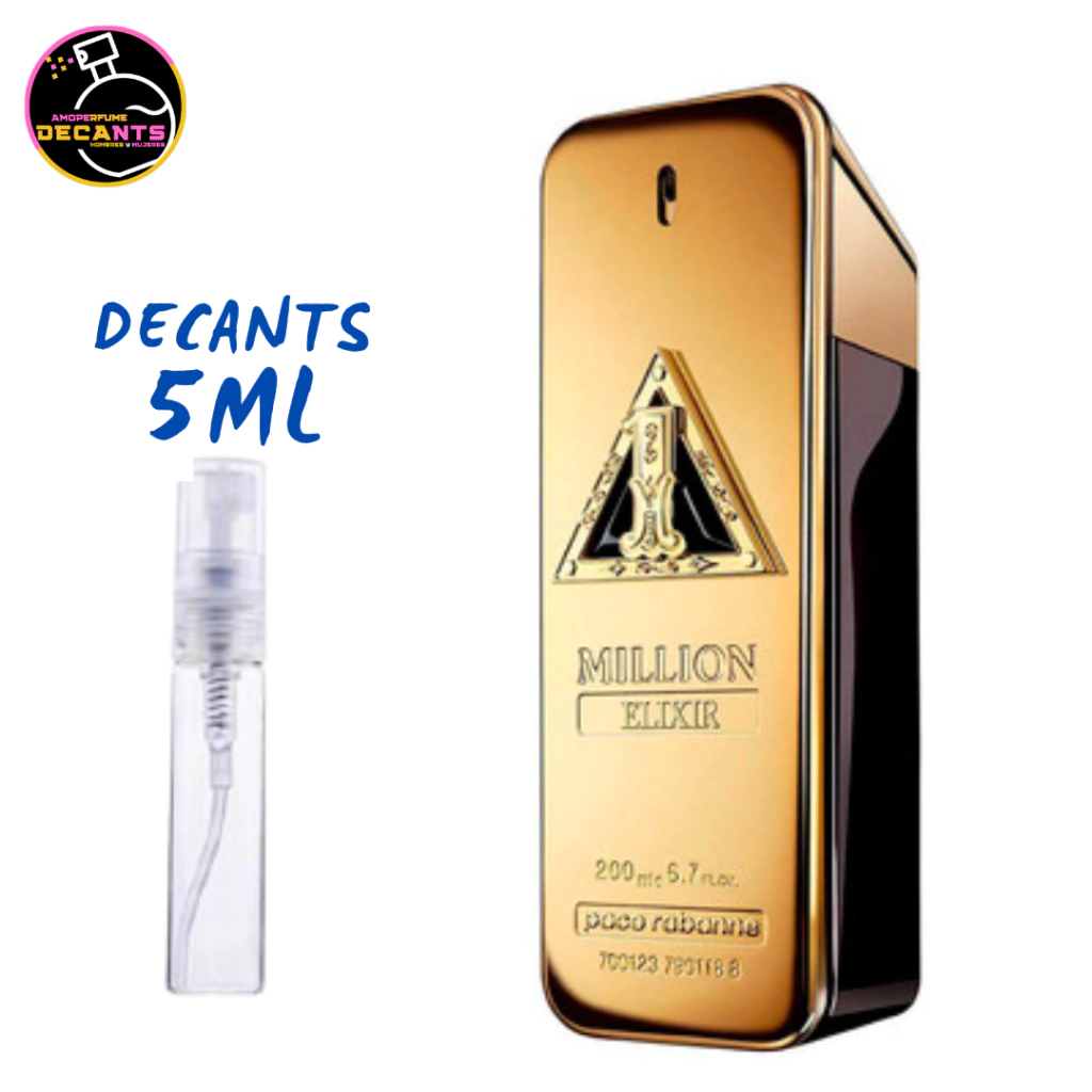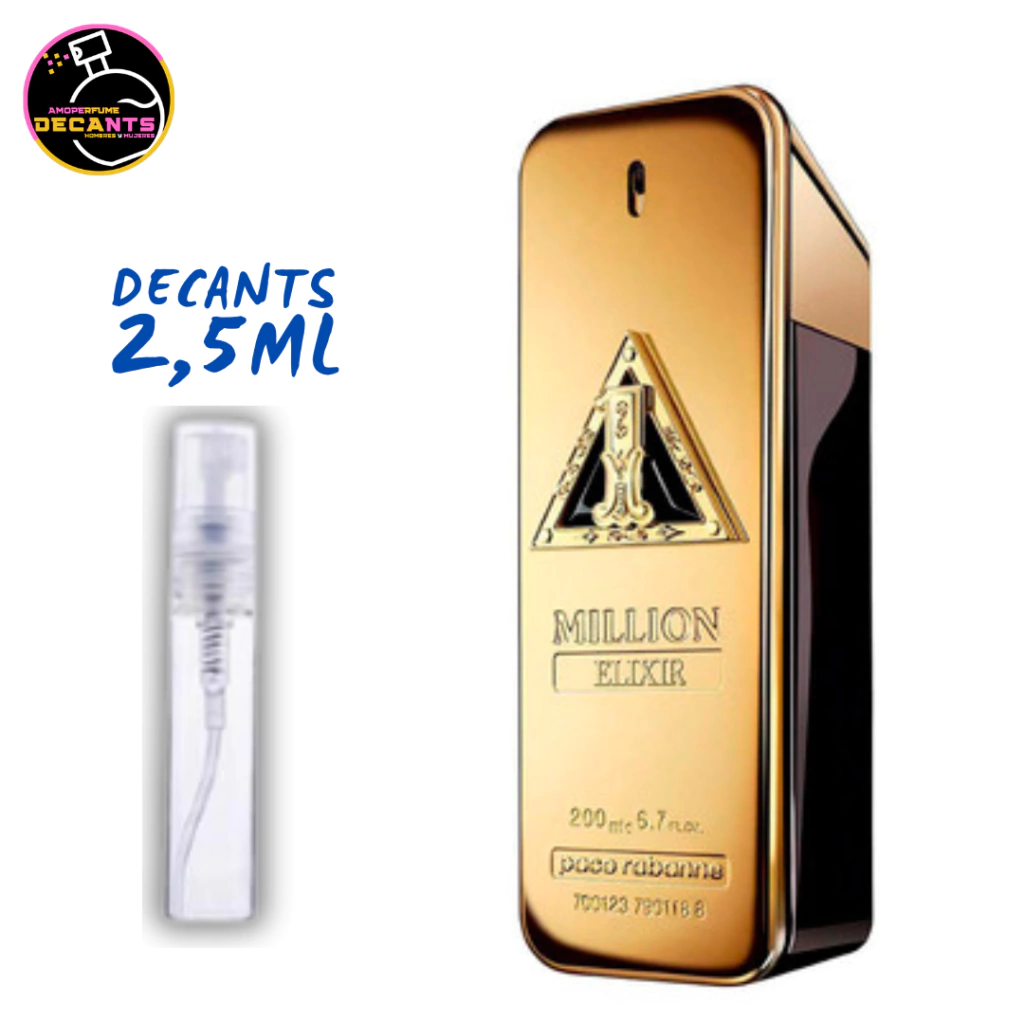 1 Million ElixirdePaco Rabannees una fragancia de la familia olfativa para Hombres. Esta fragrancia es nueva.1 Million Elixirse lanzó en 2022. Las Notas de Salida son manzana y Davana; las Notas de Corazón son rosa de Damasco, osmanto (olivo oloroso) y cedro; las Notas de Fondo son absoluto de vainilla, haba tonka y pachulí.