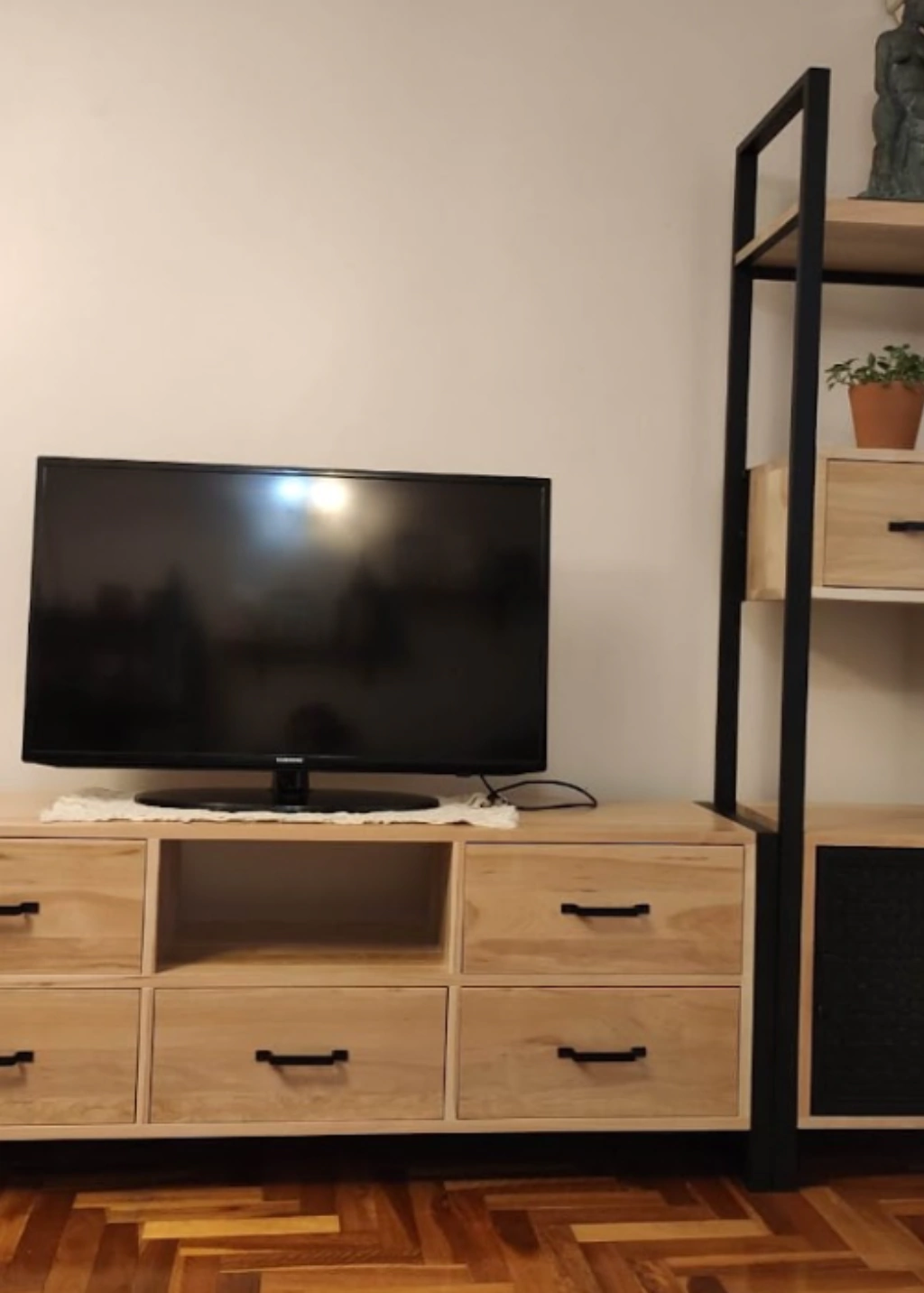 Rack Lecky es ideal para cualquier sala de estar, combinando diseño y funcionalidad. Con unas medidas del módulo central de 160x40x60cm y las torres de 50x40x190cm, este rack ofrece una estructura robusta y duradera, fabricada en Madera hidrolaqueada. Los plazos de entrega son aproximadamente 45 días, ya que nos tomamos el tiempo necesario para asegurar la máxima calidad en la fabricación.