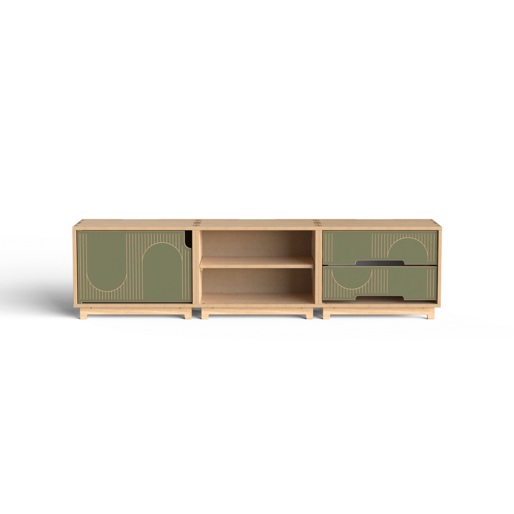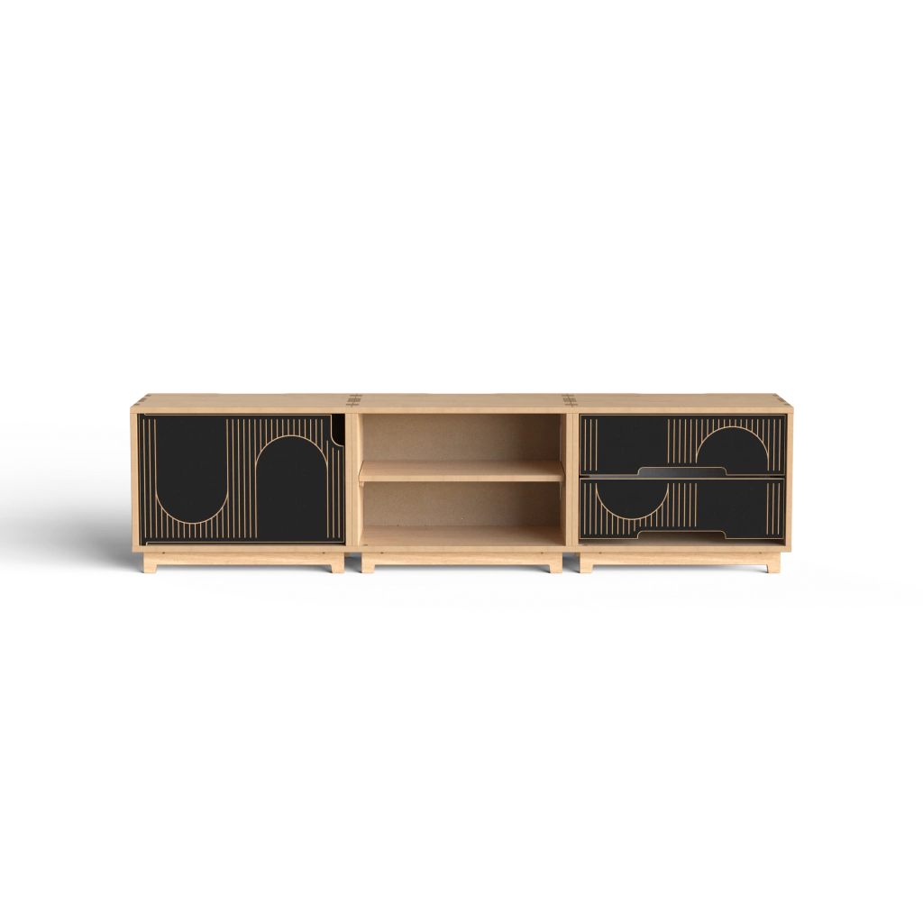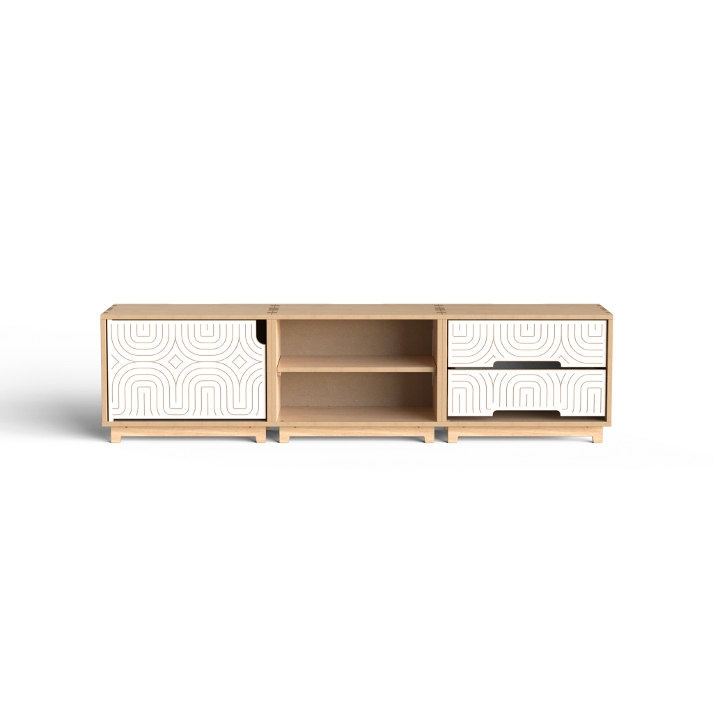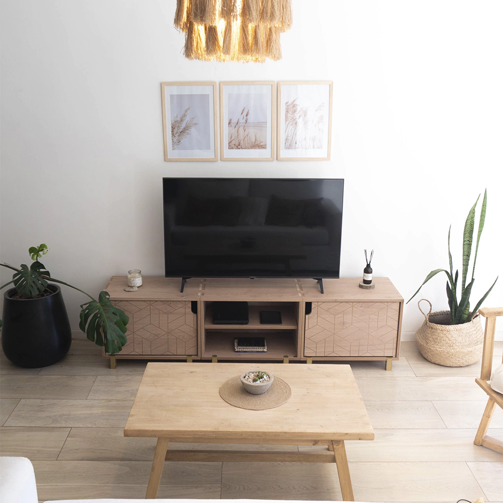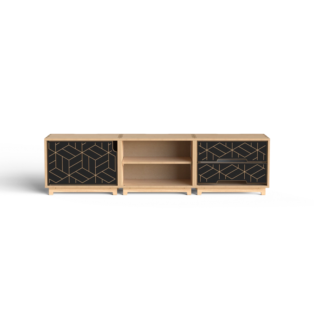 Combo rack tvAlice es un diseño en bloques, se unen a través de unas chapas que diseñamos con este fin =)El combo incluye:Bloque con estanteBloque con estante + puertaBloque con 2 cajones3 pares de patas*****Sus frentes estampados son una ruptura en los diseños actuales.Patas de chapa que le dan el toque justo minimalista.Material: enchapado mdf 18mmMaterial cajones: enchapado mdf de 12mmMedidas de cada bloque50cm de altura63cm de ancho42cm de profundidadMedidas totales (medidas del rack)50cm de altura189cm de ancho42cm de profundidad