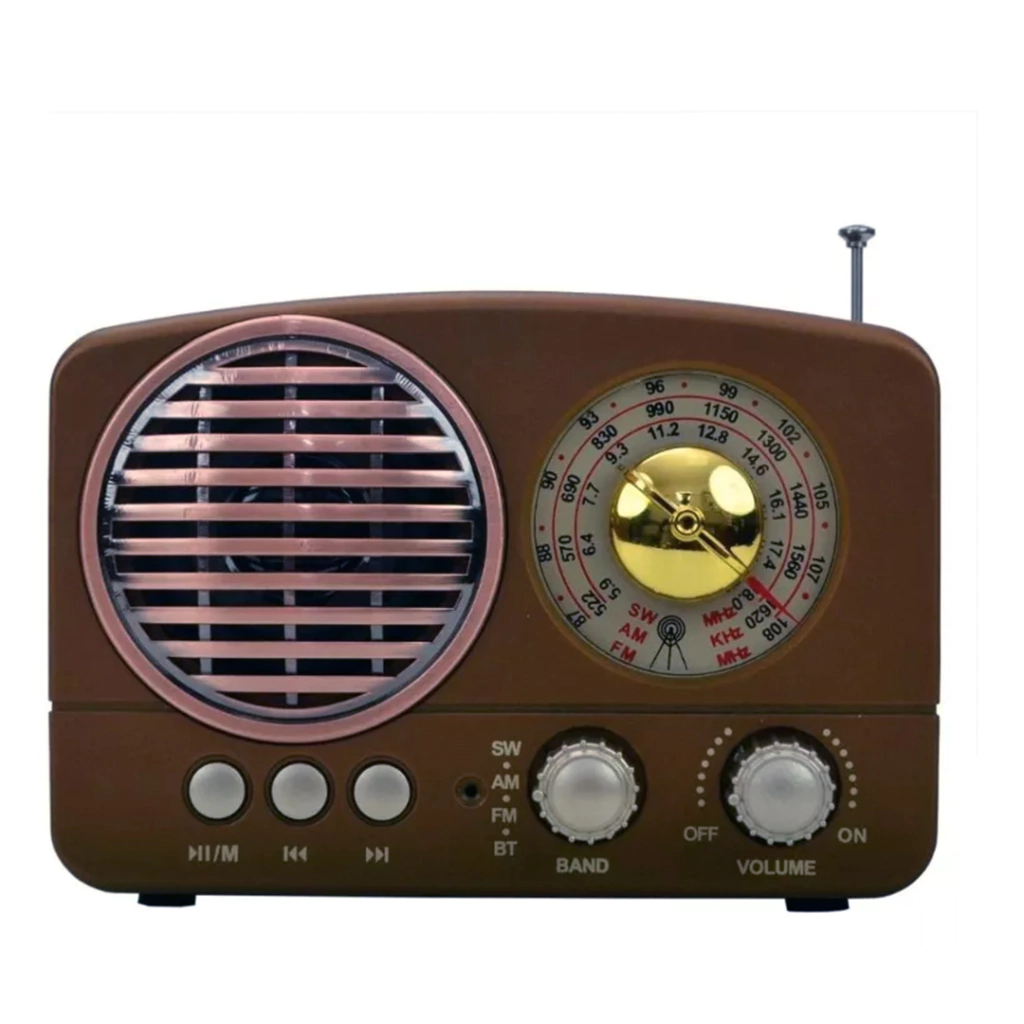 RADIO RETRO VINTAGE PARLANTE RECARGABLE BLUETOOTH 3 BANDAS:* SELECCIONAR COLOR EN LOS CUADRITOS DEBAJO DEL PRECIO.* Alimentación: 5v -RECARGABLE con Cable USB (INCLUIDO).* NO CARGAR EN CARGADOR DE CELULAR.* CARGAR en computadora, tv, alargue USB, adaptador 220v / USB de hasta 5v y 500mAh* Sintonización: Analógica con Perilla Manual en el Frente.* Frecuencias: FM - AM - SW.* Entradas: USB - Bluetooth - AUX - Tarjeta SD - Micro USB (para cargar).* Botonerade Avance / Pausa / Retroceso en el Frente.* Antena Metálica Telescópica.* Potencia: 5w.* Medidas: 13cm (largo) x 9cm (alto) x 9cm (profundidad).Somos Videosuiza desde 1985 brindando imagen y servicio.Vendemos insumos y todo tipo de articulos de computacion originales de la mejor calidad. Mas de 35 años de experiencia nos avalan.---------------------------------------------------Nos encontramos en Av.Presidente Peron 3159, Los Polvorines.Horarios de atencion del local:Lunes a Sabados de 9 a 19 hs---------------------------------------------------Hacemos Factura A---------------------------------------------------Servicio tecnico de Pc y notebooks en tan solo 72HsHacemos envios a todo el pais!Estamos para ayudarlo, su consulta no es molestia!
