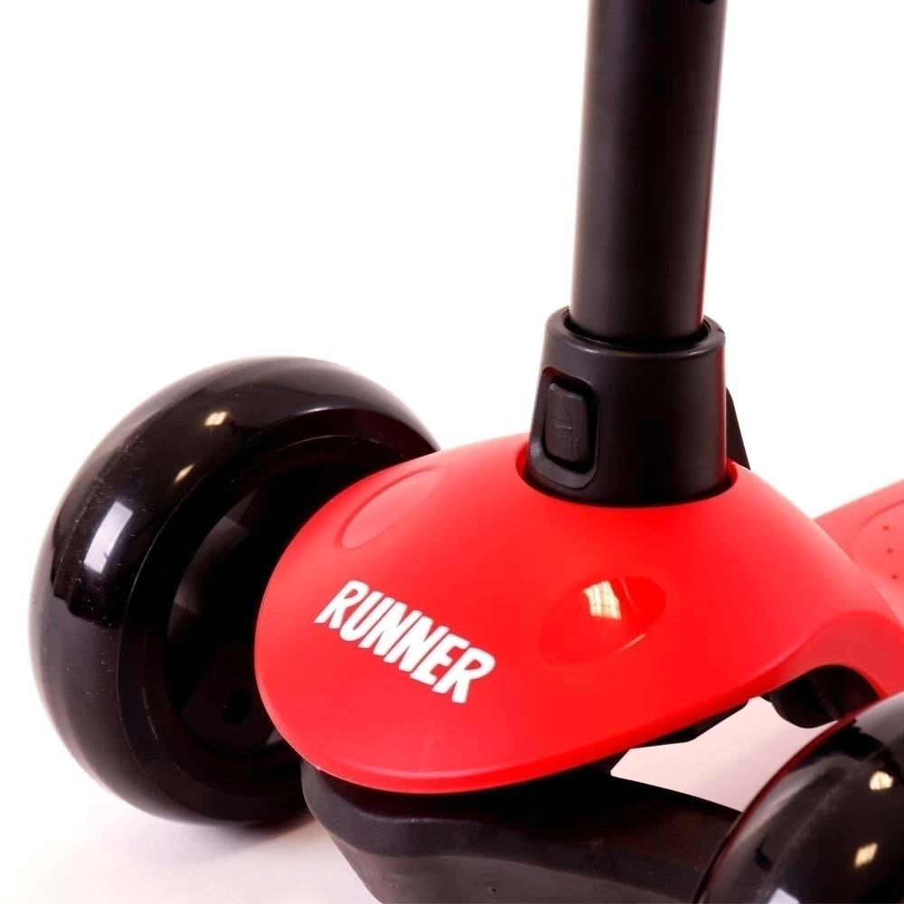 CONSULTAR COLORES DISPONIBLESMonopatin RUNNERNúmero de artículo M 901DESCRIPCIÓN:Altura regulable 62cm a 77 cm..Freno seguro.Ruedas LED activadas por movimiento.Soporta hasta 50kg.