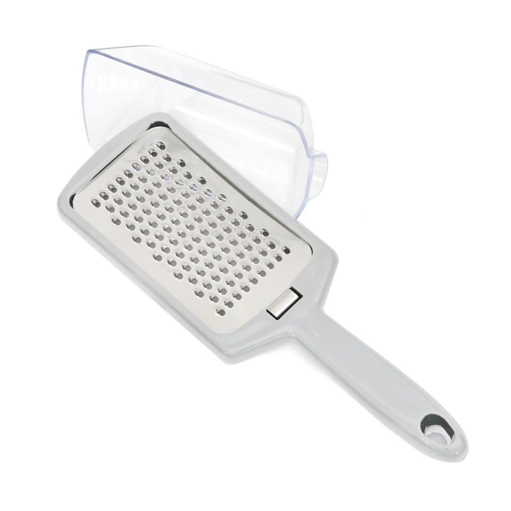 Rallador de queso de acero inoxidable con mango. Incluye taper de plástico como recipiente donde cae todo lo rallado. Cómodo para el momento de rallar queso o verduras, el recipiente contenedor permite no ensuciar la mesada y contener todo el queso rallado.Ideal para almacenar y evita desperdicios, el recipiente se puede poner y sacar y usarlo como quesera. Súper fácil de usar. El rallador posee 1 solo corte de rallado.Material: Acero inoxidable y plástico.Medidas del rallador: 22 cm (largo) x 7 cm (ancho) x 5 cm (alto)Medidas del recipiente: 12 cm (largo) x 6 cm (ancho) x 4 cm (alto)