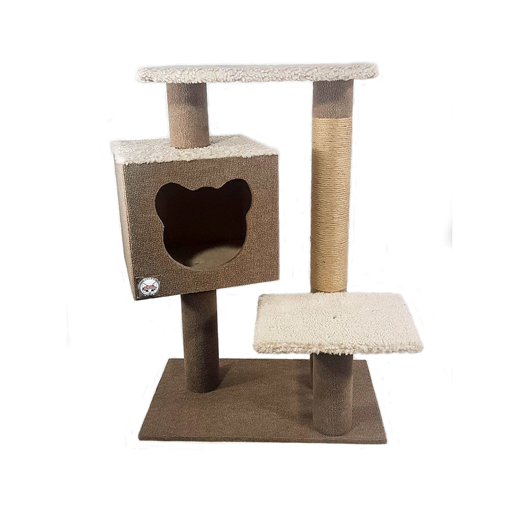 TORRE COMARCADescripción: Rascador tapizado en alfombra beige, corderito beige y yute.Medidas: Altura 85cm; Base 35x60cm; Tabla flotante 35x25; Tabla superior 30x50cm; Cajón 35x30cm.IMPORTANTE: Los colores de las fotos pueden variar ya que son ilustrativas. Colores disponibles en el selector de colores.