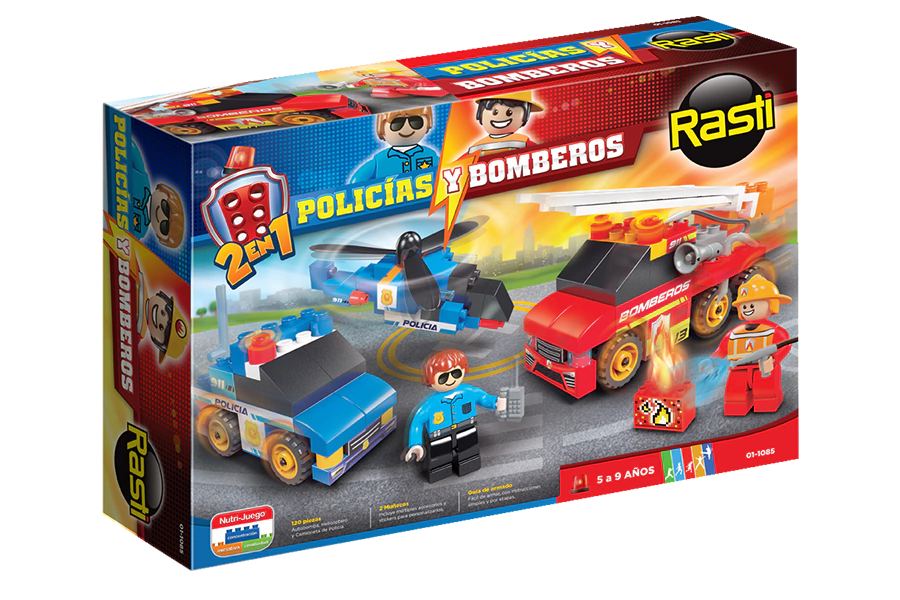 Rasti Policías y Bomberos - 130 Piezas, 2 Muñecos, Guía de Armado