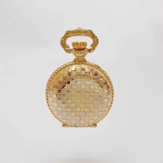 Relicario antiguo con reloj en el interior bañado en oro 24kt25mm