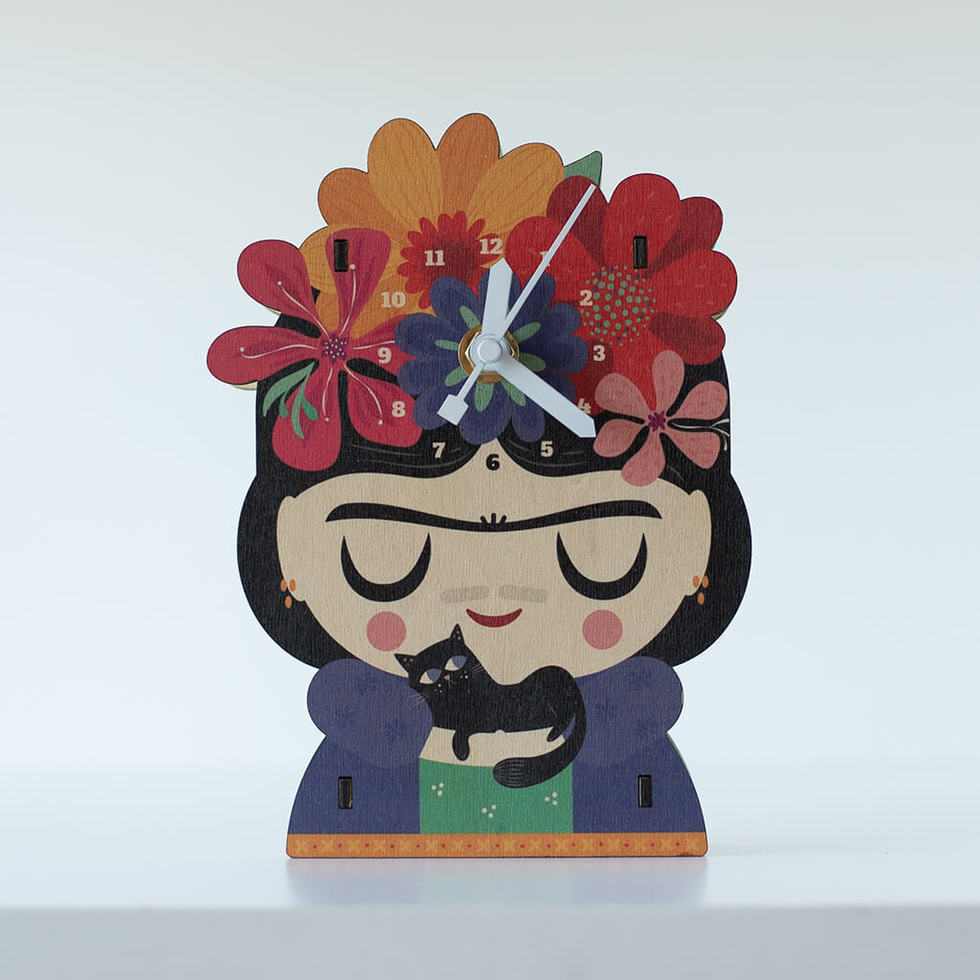 Divertidos relojes de madera guatambú, que alegran cualquier rinconcito del hogar y no te hacen llegar tarde a ningún lado :) Se pueden apoyar o colgar.Material madera natural, laminada en guatambú, 3 mm de espesor / Impreso con tintas ecológicas, no tóxicas / Lleva una perforación al dorso, para que también pueda colgarse en la pared / Funciona con 1 pila AA (no incluida)