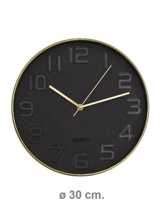 CARACTERÍSTICAS PRINCIPALESMarcaVGOModelorl30202Tipo de relojAnalógicoOTROSIncluye pilas:NoCondición del ítem:NuevoDiseño:chicDiámetro:30 cmMaterial:PlásticoDESCRIPCIÓNDorado con fondo negro y números negros.Diametro 30cm.Funciona con 1 pila AA (No incluida con el producto).Material: plastico.