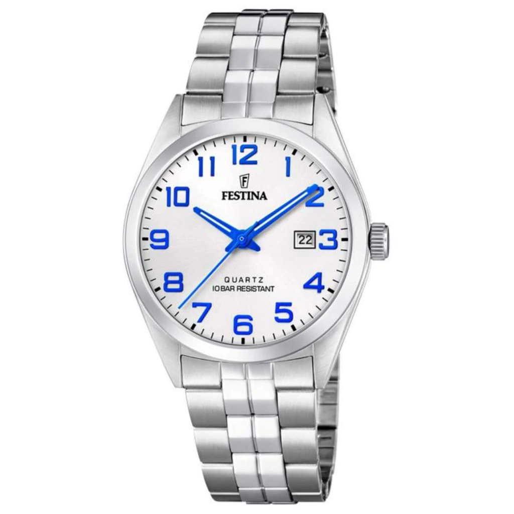 Reloj Festina de acero clasico con calendario.Sumergible . Caja y malla de Acero inoxidable. Garantia Oficial por un año.Caja y Bolsa de la marca.