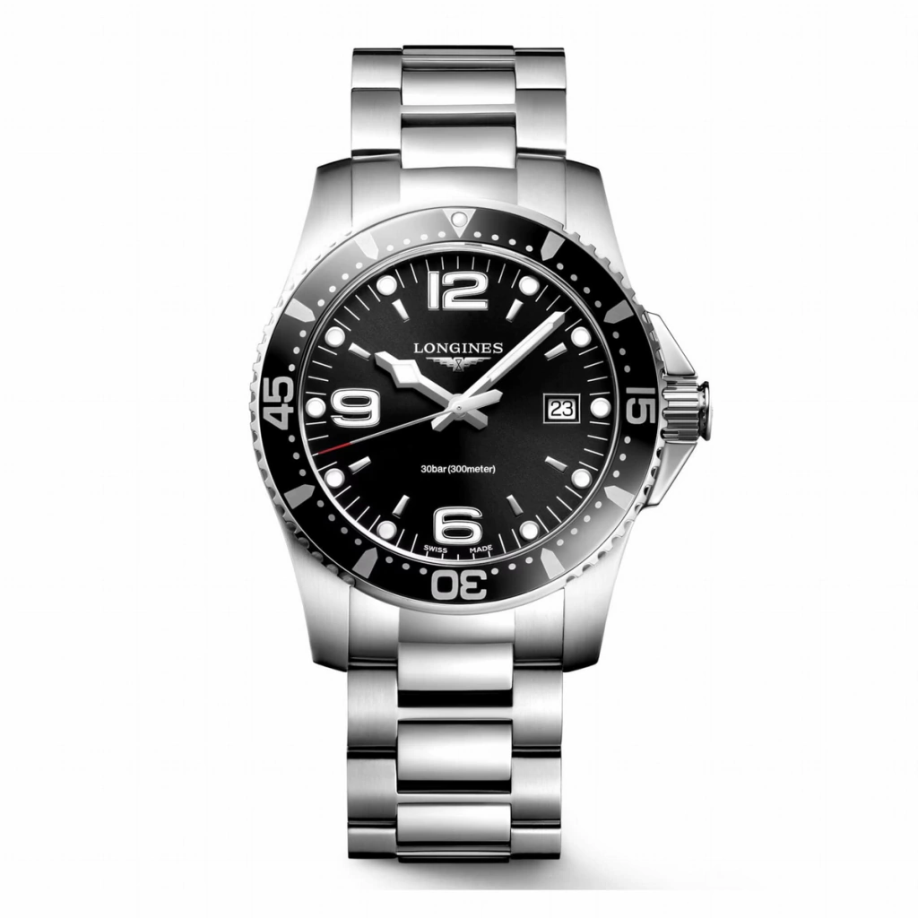 Una colorida actuación en el mundo del buceoFundada en 1832 en Saint-Imier, la famosa marca de relojes suizos Longines puede presumir de una larga tradición caracterizada por la elegancia y las prestaciones de sus productos. Esos valores están perfectamente representados en The Longines Sport Collection. La línea HydroConquest está dedicada a hombres y mujeres que buscan un reloj de alto rendimiento que combine innovación técnica y elegancia.CAJAForma: RedondaMaterial: Acero inoxidableCristal: Cristal de zafiro resistente a los arañazos, con varias capas de revestimiento antirreflectante en la parte inferiorParte posterior de la caja: Fondo de caja atornilladoDimensiones: Ø 41.00 mmDistancia entre asas: 21 mmDe asa a asa: 51,10 milímetrosGrosor: 11.90 mmEstanqueidad: Estanqueidad hasta 30 barEspecificaciones: Corona atornillada, bisel giratorio unidireccional.Peso: 185,1 gramosESFERA Y AGUJASColor de la esfera: Negro rayo de solCírculo Horario: Números e índices arábigos aplicados.Agujas: Agujas plateadas pulidasEspecificaciones: : Super-LumiNova ®MOVIMIENTO Y FUNCIONESTipo de movimiento: CuarzoFunción: Horas, minutos, segundos y fecha.Calibre: L157Batería: RENATA 371Funciones especiales: E.O.L.BRAZALETEMaterial: Pulsera de acero inoxidableHebilla: Con doble cierre desplegable de seguridad