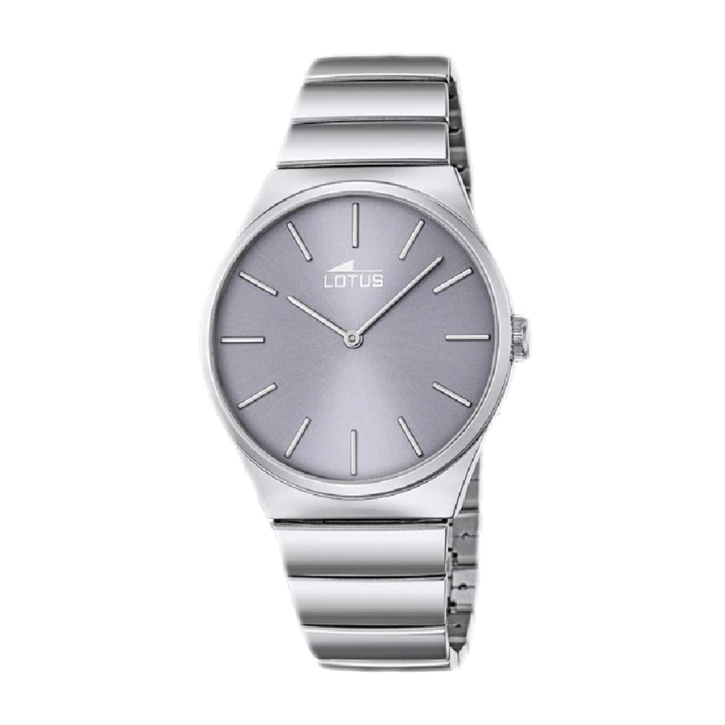 Los relojes Lotus ofrecen diseños exclusivos, de última generación para un público contemporáneo, urbano y moderno.COLECCIÓN: TrendyREFERENCIA: 18281/2MOVIMIENTO: Cuarzo Miyota Japón.FUNCIONES: Hora y minutos.FORMA DE LA CAJA: RedondaMATERIAL: Caja de acero inoxidable.ESFERA Y AGUJAS: Gris. Índices plateados.CRISTAL: Mineral.TAPA: Cerrada a presión.CORONA: Cerrada a presión.CARACTERÍSTICAS: Clásico.DIMENSIONES: Ø 31.00 mm.PESO: 70 g.ESTANQUEIDAD: Estanqueidad hasta 5 bar / 50 m (Ducha).BRAZALETE: Correa de acero inoxidable de 16 mm de ancho.HEBILLA: Cierre desplegable con apertura mediante pulsadores.GARANTÍA: 1 año Oficial internacional.